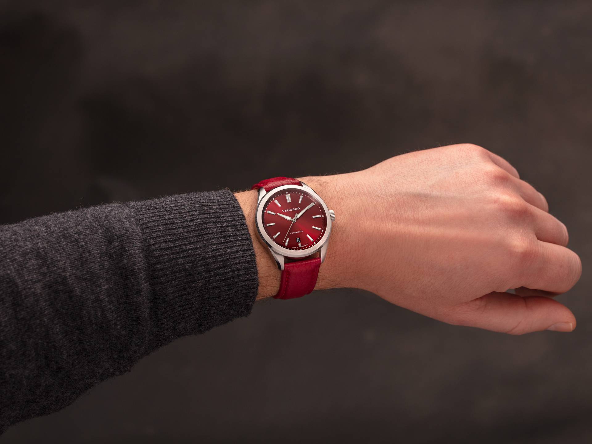 "Born" Hirschlederband - 20mm, rot, Stahlverschluß