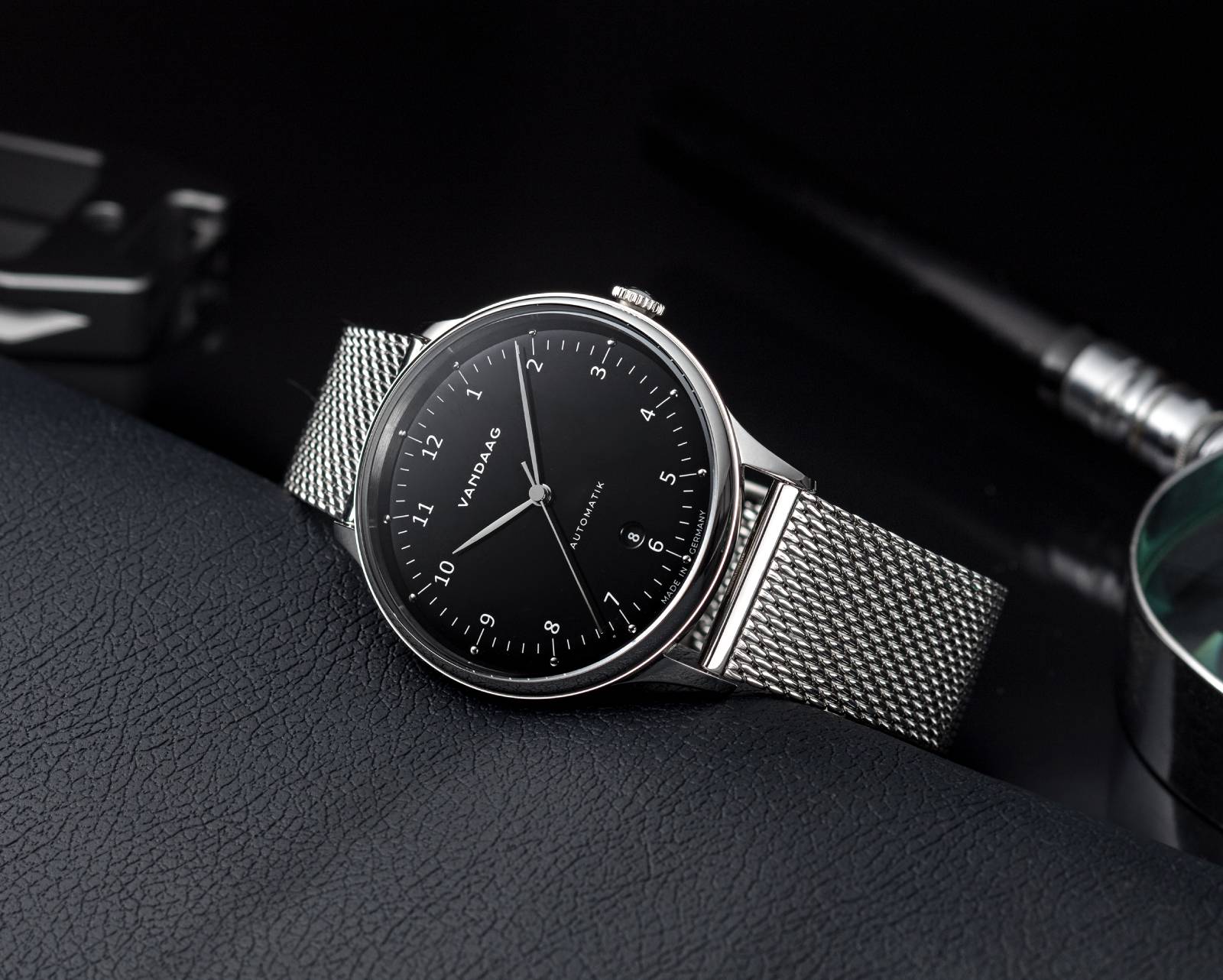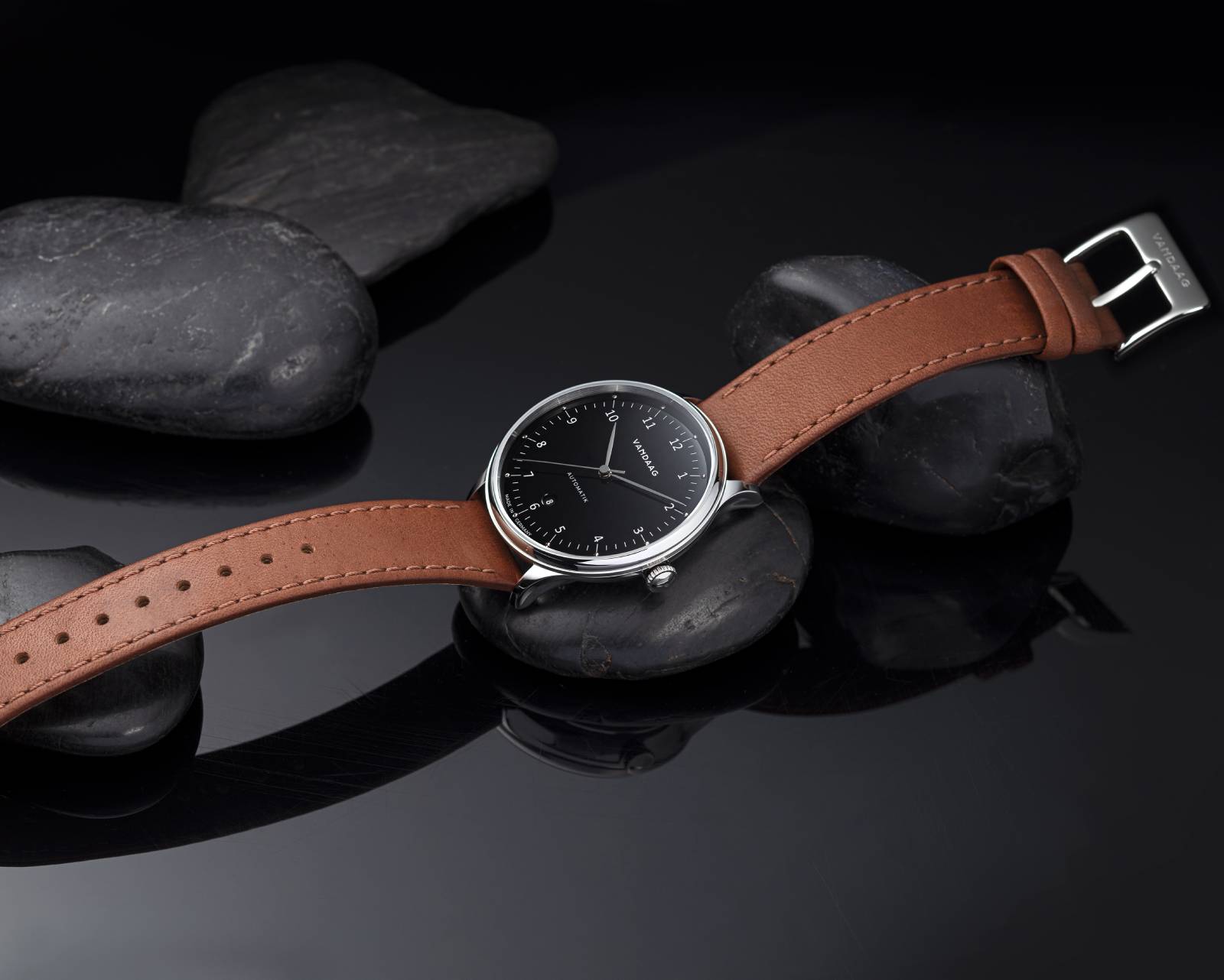 Mit ihrem Retro-Look, dem 40mm Edelstahlgehäuse, dem soften Lederband, dem fein gewölbten schwarzen Zifferblatt und den klaren arabischen Zahlen ist die Primus eine Uhren-Schönheit ohne Alter.