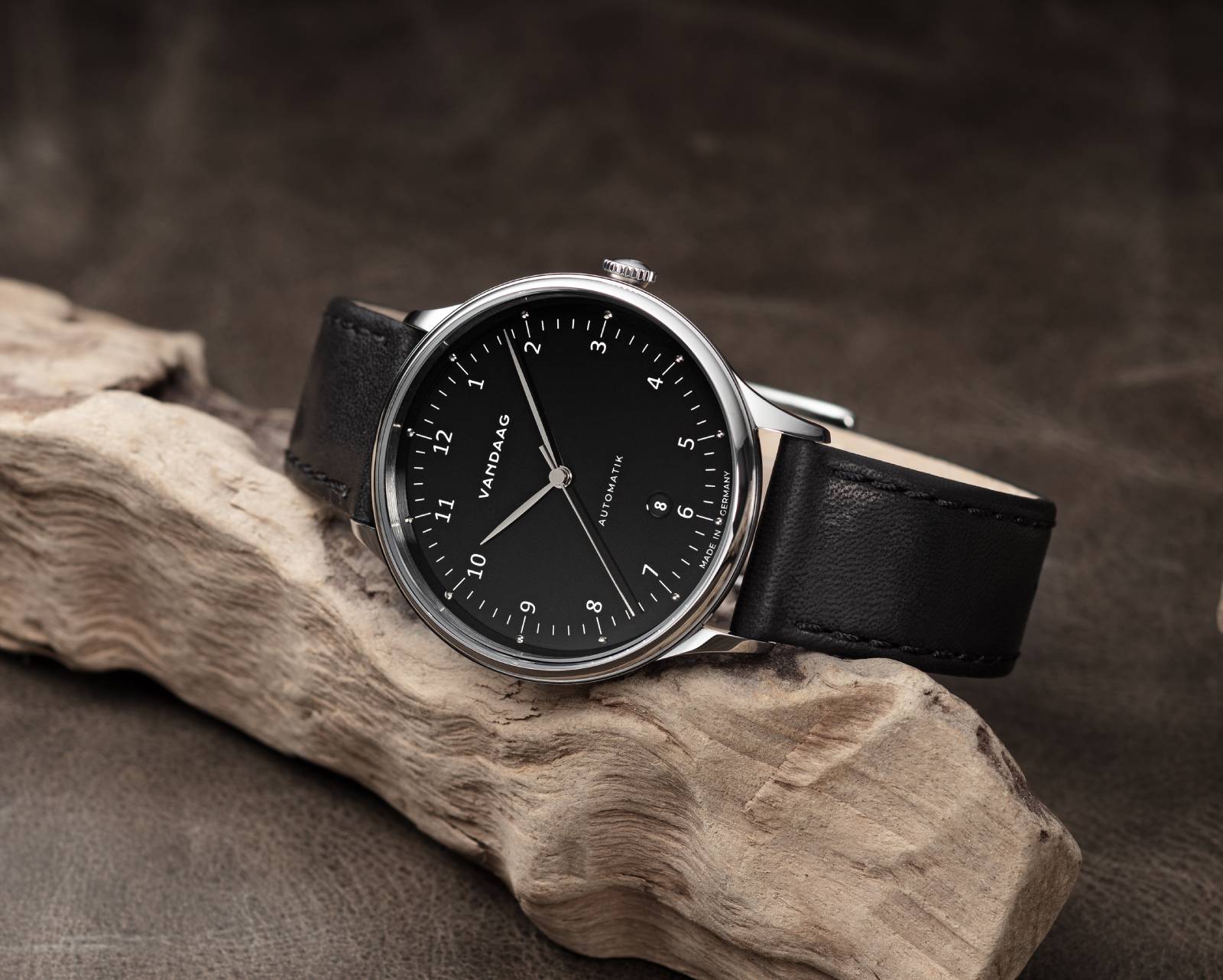 Primus Automatik - Stahl-Schwarz - schwarzes Lederband
