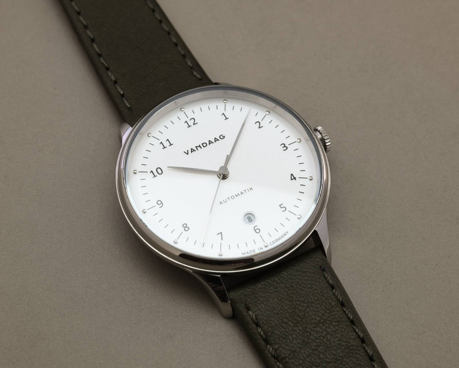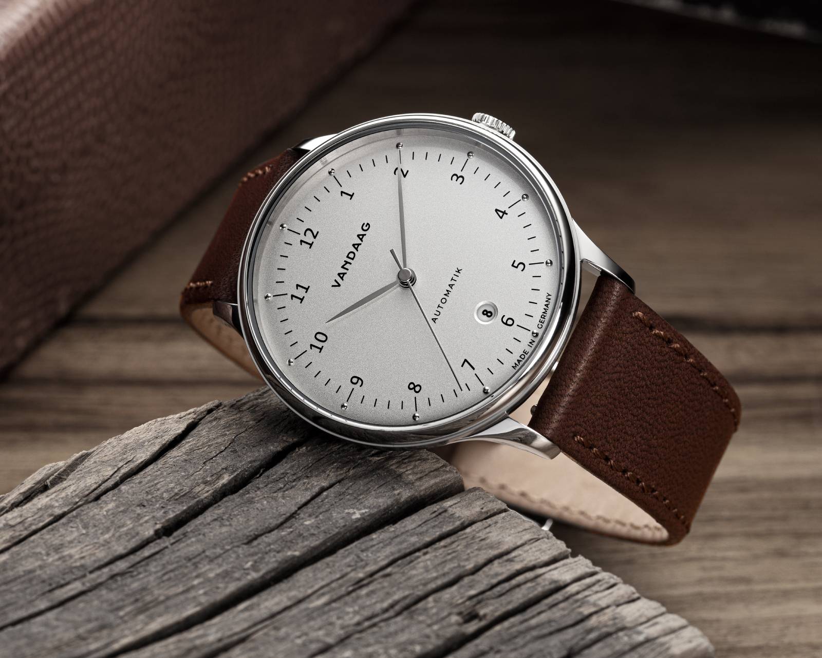 Mit ihrem Retro-Look, dem 40mm Edelstahlgehäuse, dem soften Lederband, dem fein gewölbten silber-weißen Zifferblatt und den klaren arabischen Zahlen ist die Primus eine Uhren-Schönheit ohne Alter.
