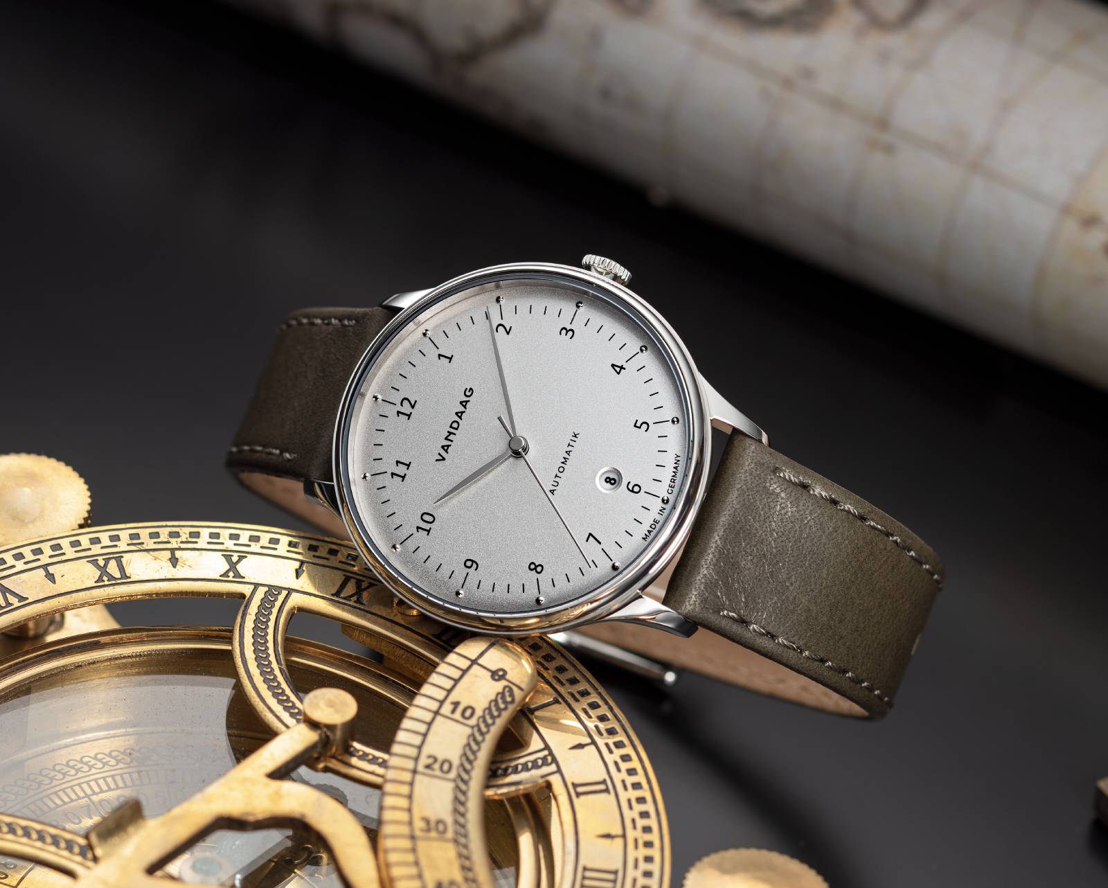 Primus Automatik - Stahl-Silber - grün-braunes Lederband
