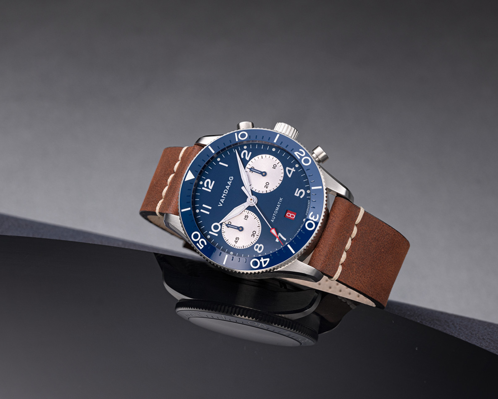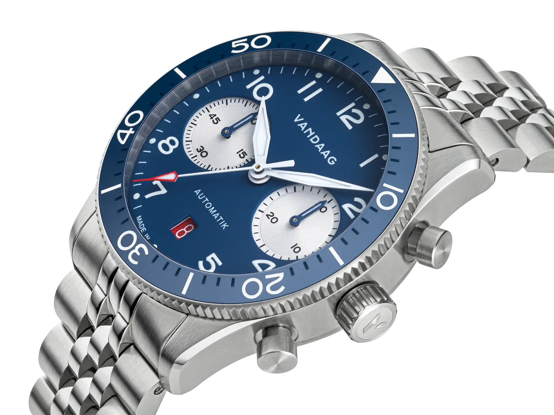 Natürlich darf auch das rote Datum nicht fehlen. Es setzt einen entscheidenen Akzent auf dem faszinierend funktionalen Zifferblatt und ist von unseren Uhrenfreunden schon zum Markenzeichen auserkoren worden.