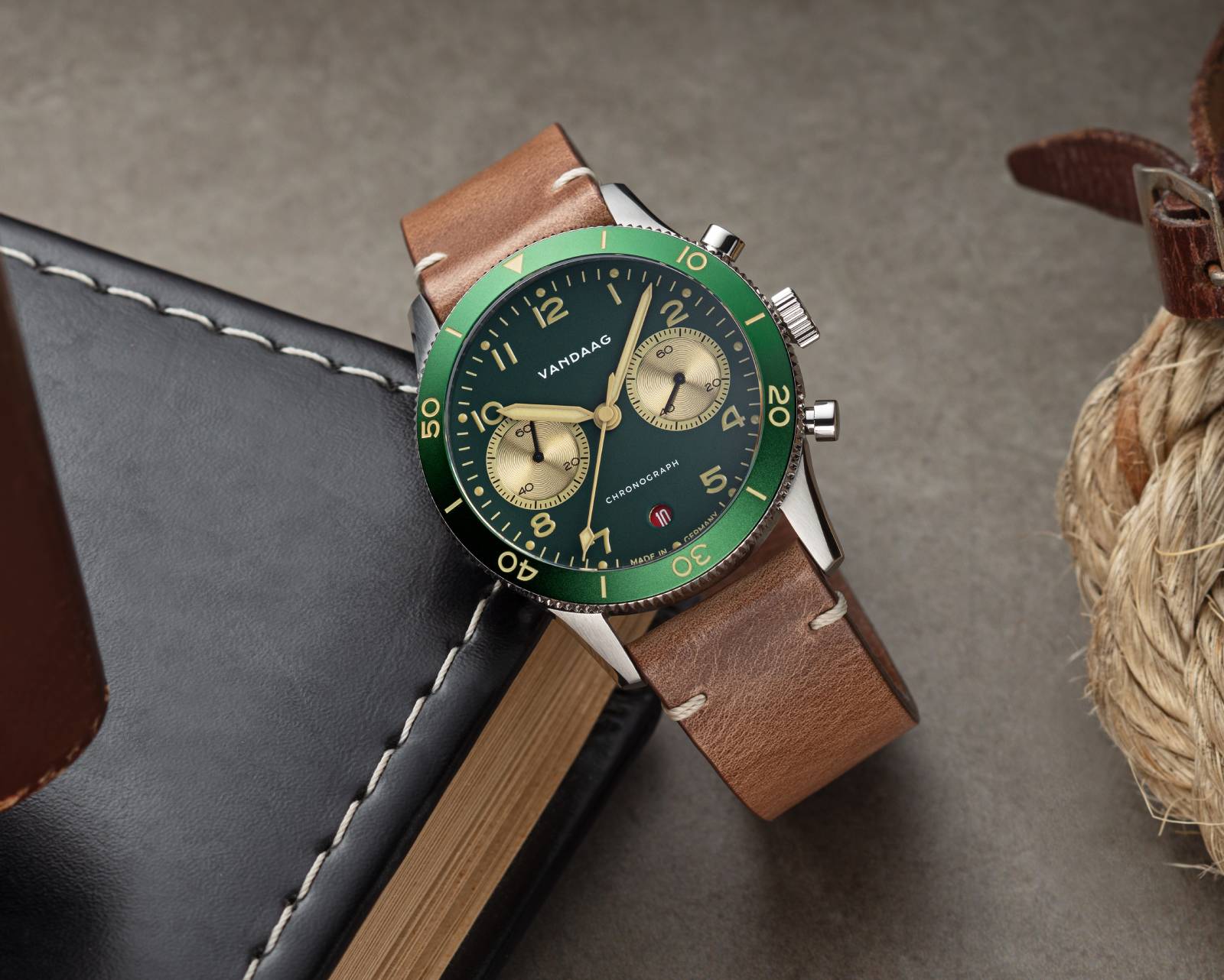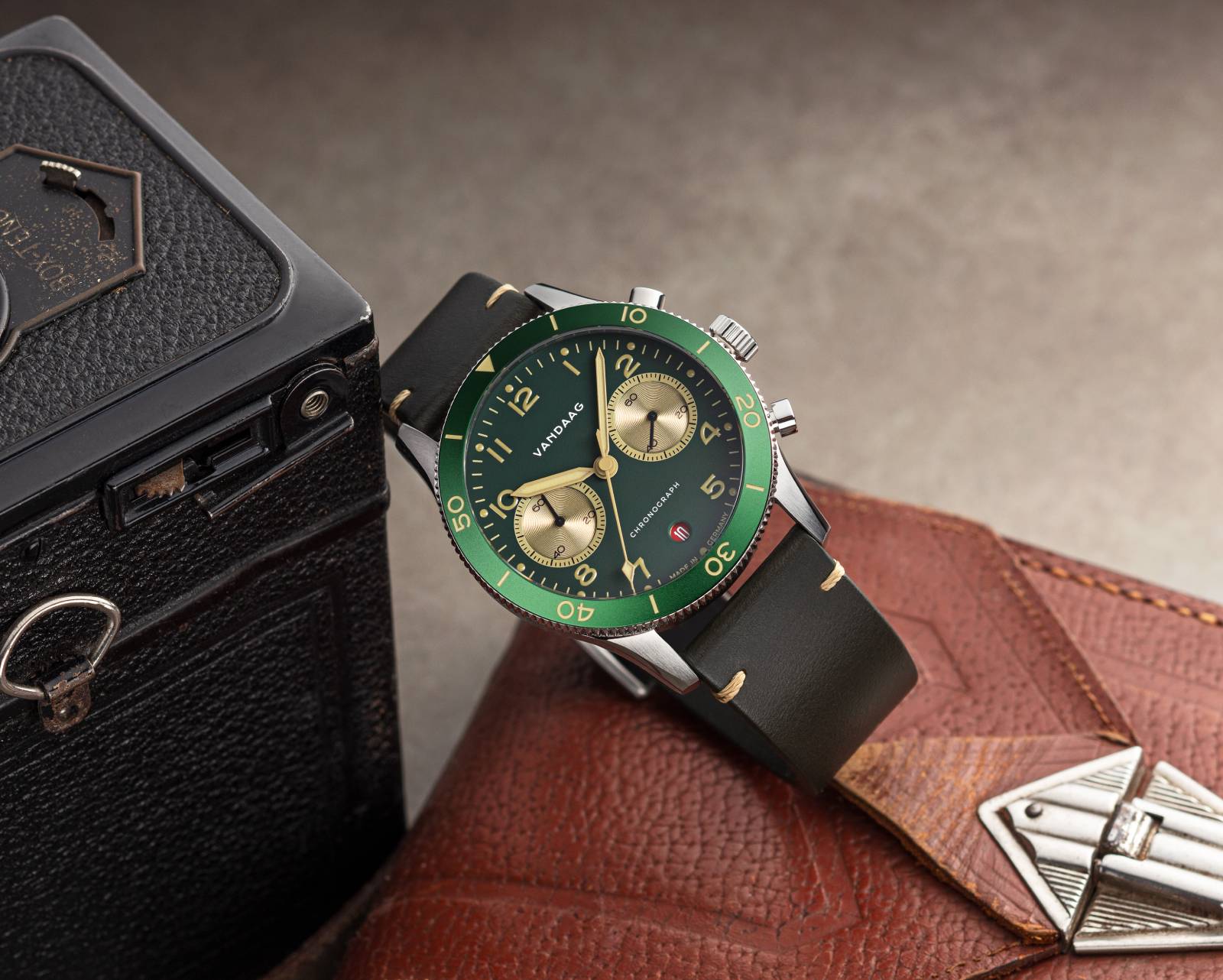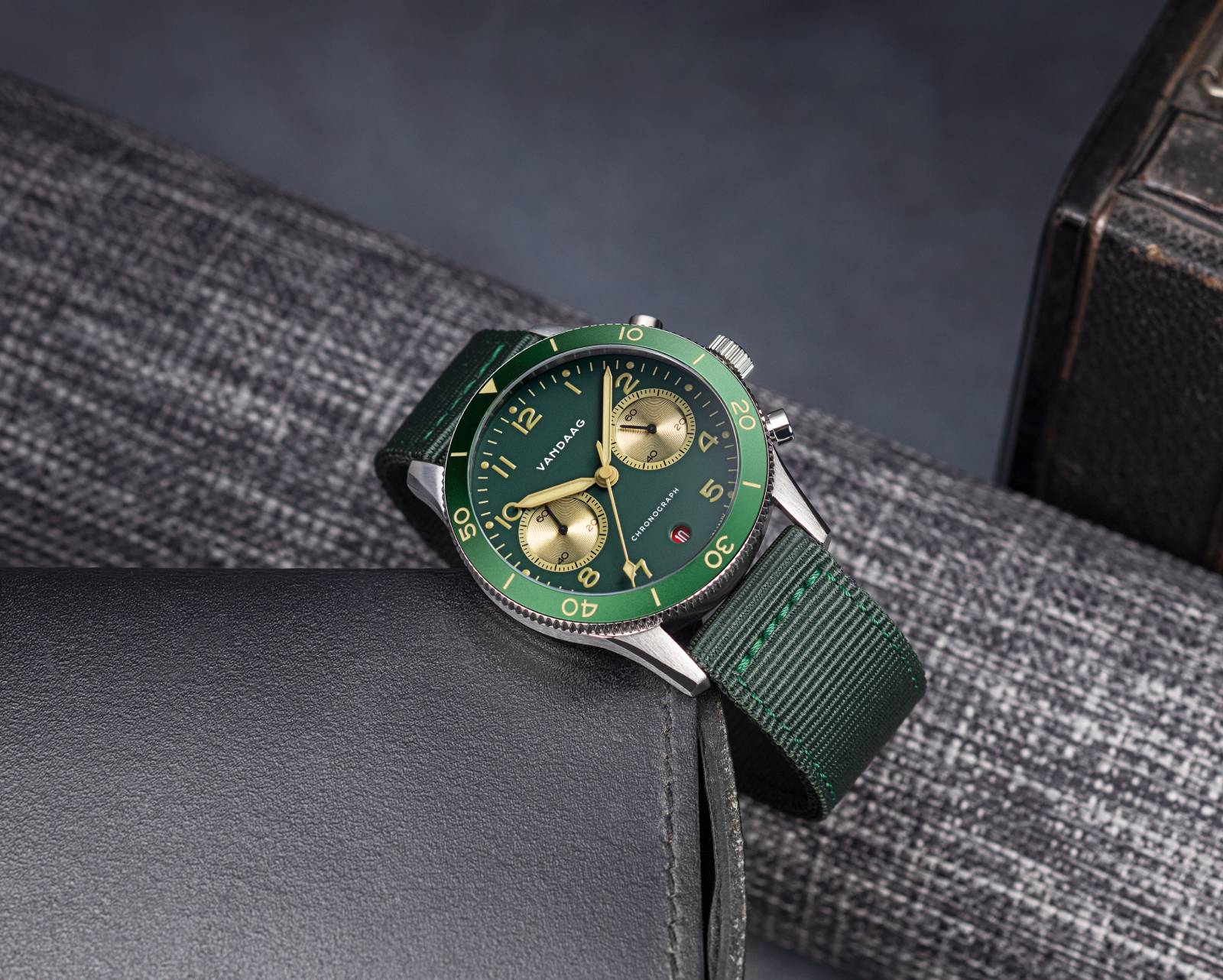 Herrenuhr Chronograph Grün im Stil einer Fliegeruhr