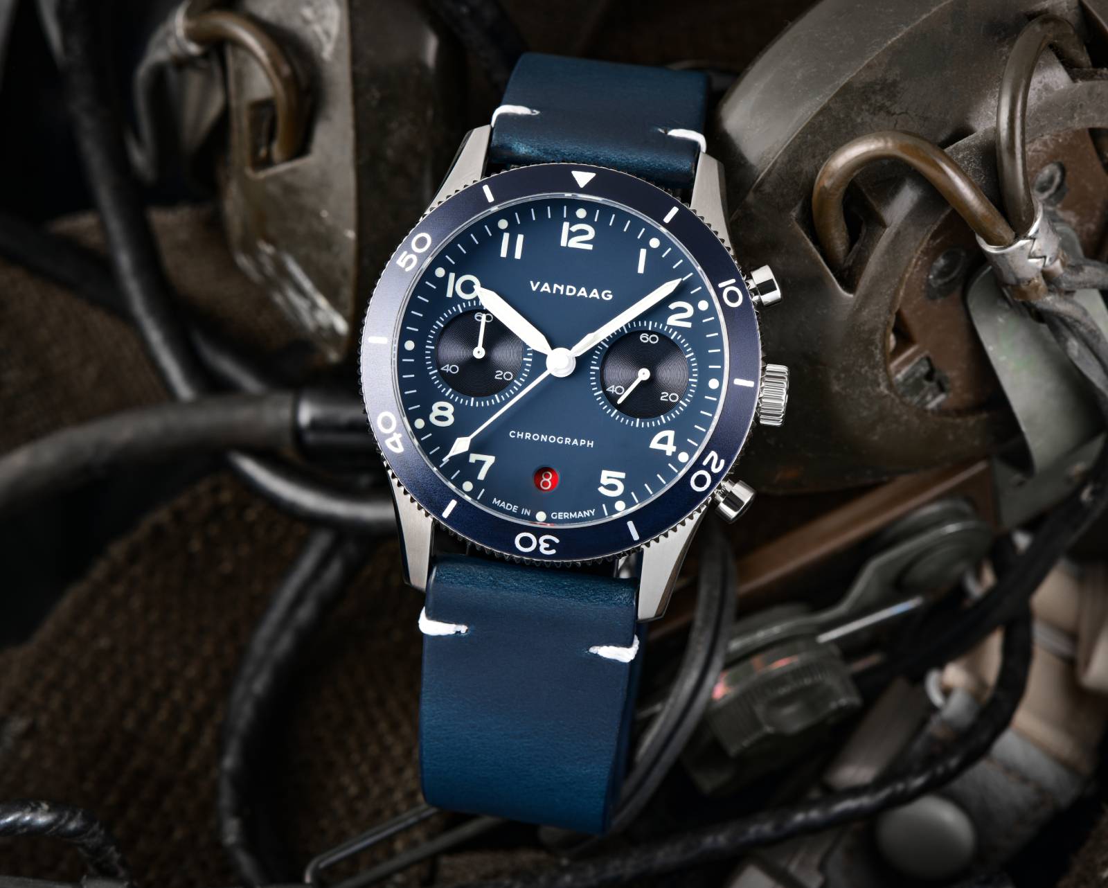 Herrenuhr Chronograph in blau im Stil einer Pilotenuhr