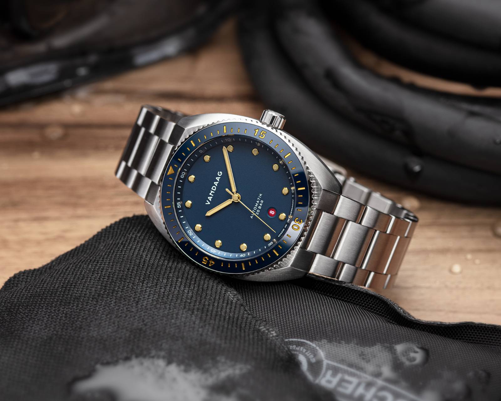 Mit ihrem 41,50mm Edelstahlgehäuse, dem massiven Edelstahlband, den 12 runden klaren Indizes auf dem matten Zifferblatt strahlt die Tiefsee Leistungsfähigkeit und Ästhetik in nordischer Zurückhaltung aus.