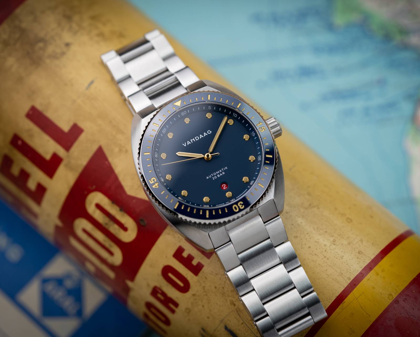 Das markante CNC bearbeitete 20BAR Retro-Gehäuse unterteilt die gebürsteten Oberflächen durch präzise gearbeitete Kanten. Die einseitig drehbare Taucherlünette mit 60-Minuten Graduierung ist in 120 Schritten fein gerastert wodurch sich Tauch- und Dekompressionszeiten präzise ablesen lassen. Die Keramikeinlage ist äußerst kratzfest und passt perfekt zum harten Saphirglas.