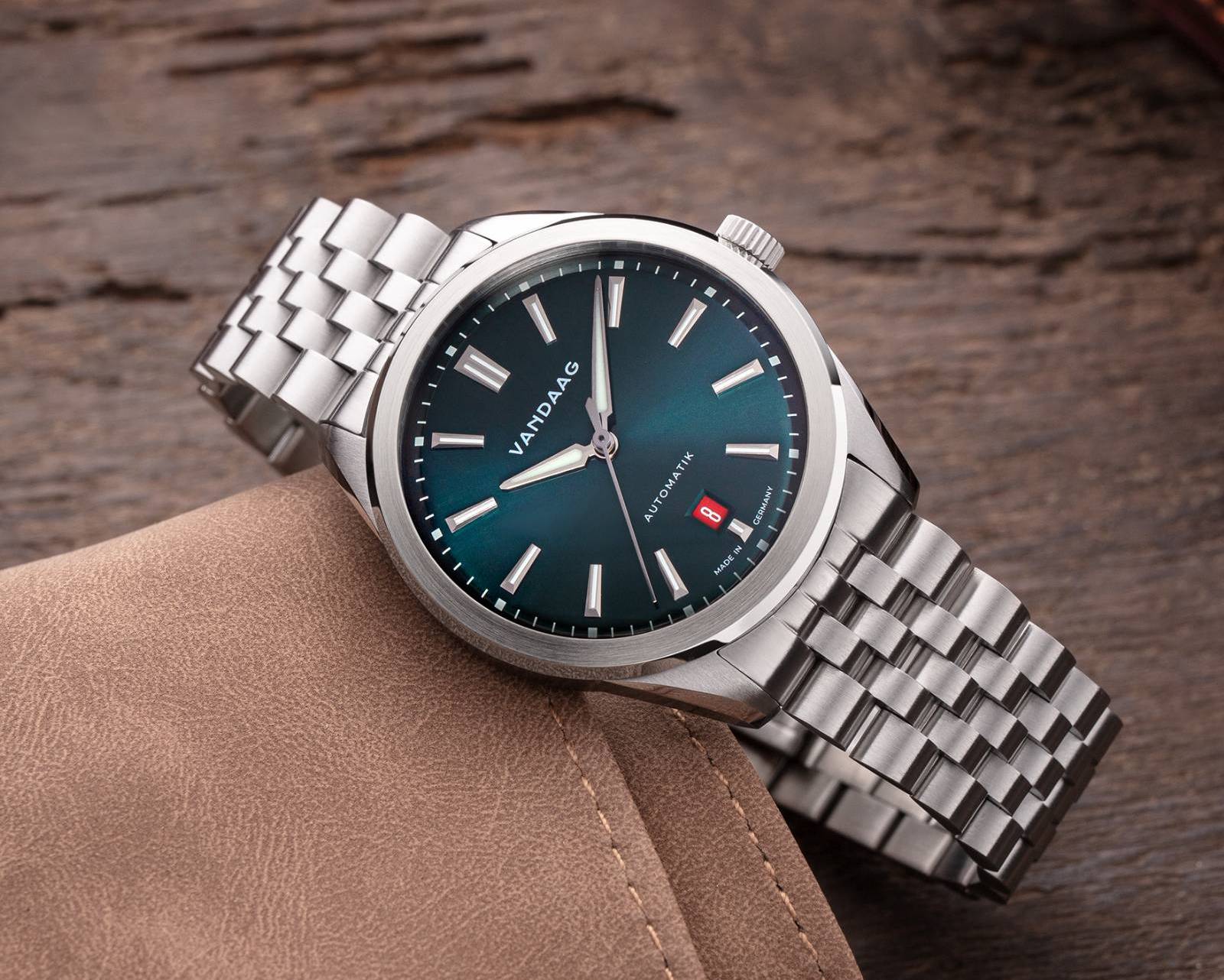 (Tools included in the scope of delivery) , 20.00mm width tapering to 18.00mm , Butterfly buckle , Integrated quick-change bars for easy exchange , Solid 5-link 316L stainless steel bracelet with screw-in shortening links in various sizes for easy length adjustment