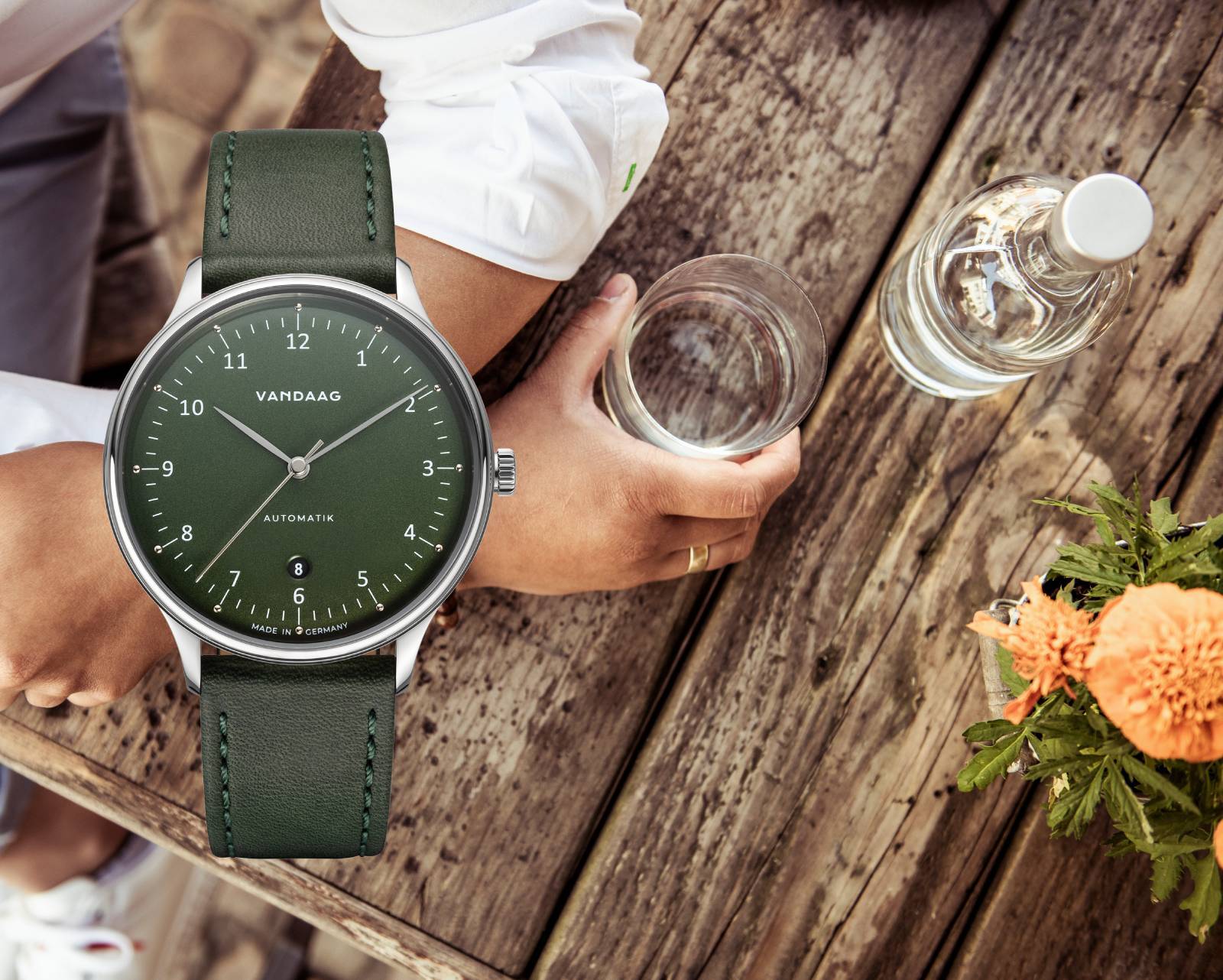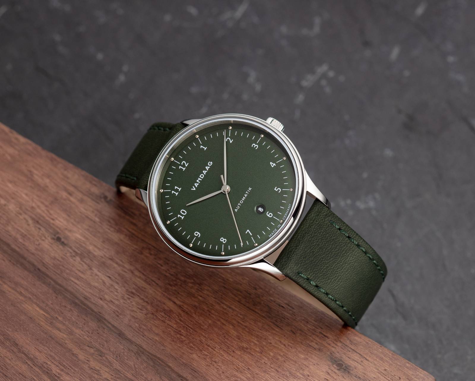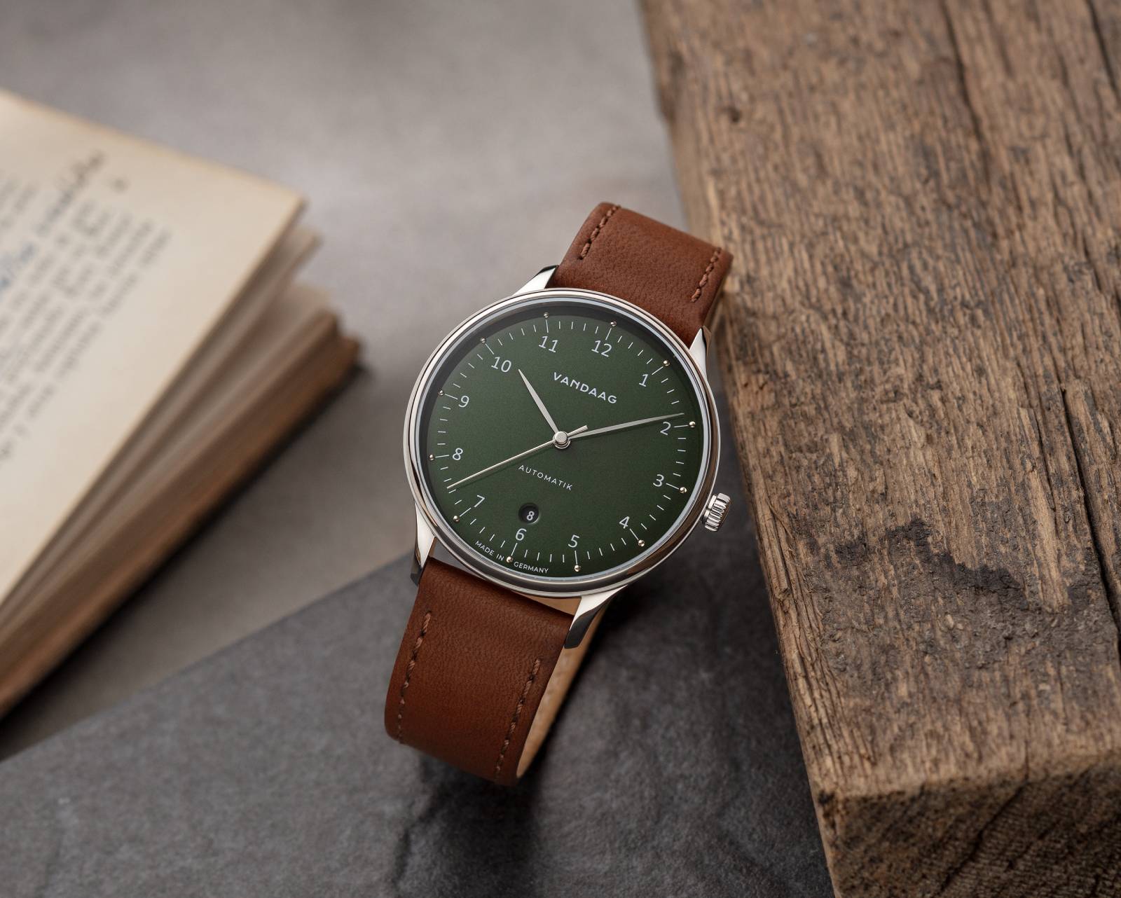 Product information "Primus Automatik - Steel-Green - light brown leather strap"